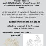 A partire da domani, LUNEDÌ 16 dicembre, alle ore 16.30, nella chiesa di Collemezzano, sarà celebrata la tradizionale NOVENA DI NATALE. Questo evento, che si terrà fino a lunedì 23 dicembre, rappresenta un appuntamento quotidiano per prepararci cristianamente al Santo NATALE di nostro Signore. La Novena di Natale è un momento di riflessione e preghiera, …