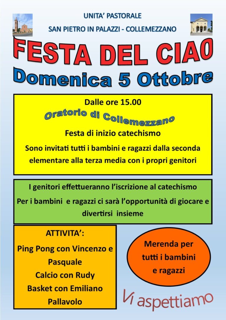 Un pomeriggio di giochi, incontri e sorrisi per iniziare insieme il cammino del catechismo Domenica 5 ottobre, dalle ore 15:00, l’Oratorio di Collemezzano apre le sue porte a bambini, ragazzi e genitori per dare il via al nuovo anno catechistico con la tradizionale Festa del Ciao. Un’occasione speciale per ritrovarsi, conoscersi e vivere insieme un …
