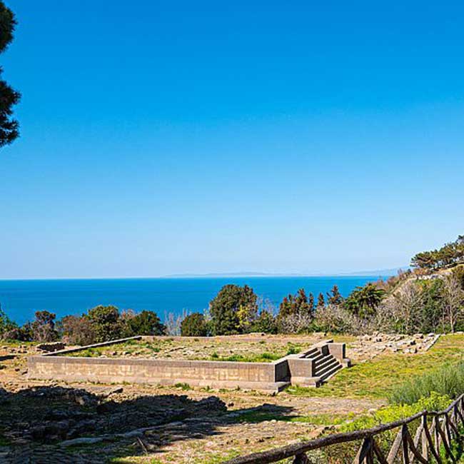 Il sito offre un’esperienza unica, con un paesaggio naturale suggestivo. Dal mare del golfo di Baratti, dove si trovano le tombe dei principì guerrieri, alla macchia mediterranea che nasconde tombe etrusche scolpite nella roccia, fino all’acropoli con i suoi edifici sacri e viste sulle isole dell’arcipelago toscano.